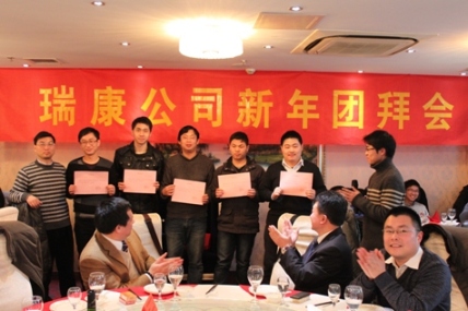 2013年1月底,公司2012年團(tuán)拜聚會在南京萬家歡酒店隆重舉行,全國各地的瑞康同仁齊聚一堂,總結(jié)了12年的工作成就,共同展望公司的美好未來。期間,表彰和嘉獎了公司表現(xiàn)突出的部門和員工,并頒發(fā)了2011和2012年瑞康初級工程師證書。